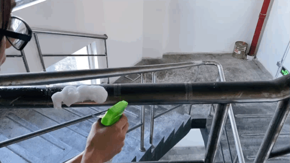 我们的标准真的很严格了,在家和公司都逛了很久,最终选了一根附着了大量灰尘的不锈钢管做实验。也是为了测试选手们对厨房水龙头、水槽、卫生间开关等金属件的清洁情况。