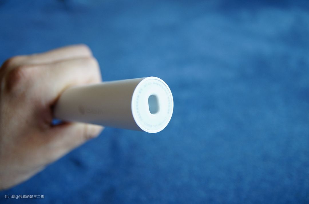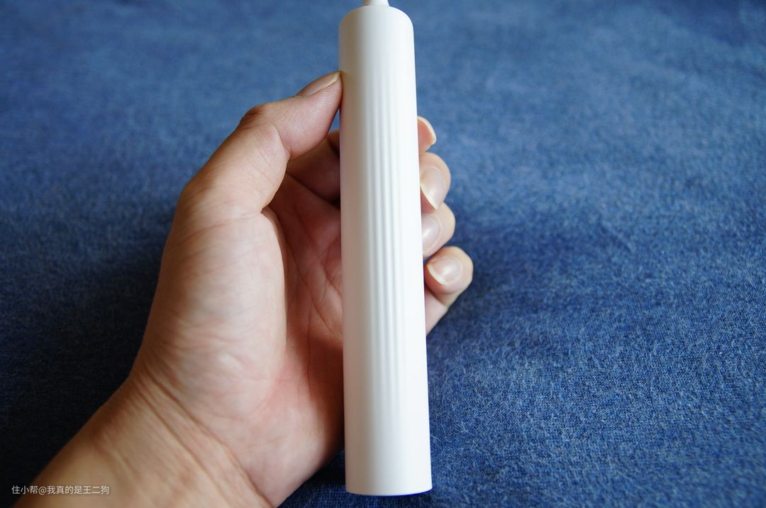 背后的多条竖条纹,有效增加了握持的摩擦力。不过和使用硅胶材料的飞利浦6730相比,贝医生的摩擦力明显弱了很多,但是日常使用也足够稳固。
