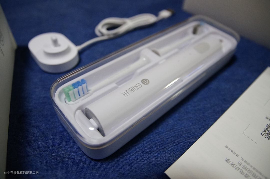 一个星期时间的使用,对这款产品个人是比较满意的。99元的价格,商家很厚道的赠送了2只刷头+1个便携盒。日常使用和350元的飞利浦6730对比发现,性能的差距并不大,配合这个价格的话,想体验下电动牙刷的用户还是比较值得购买的。