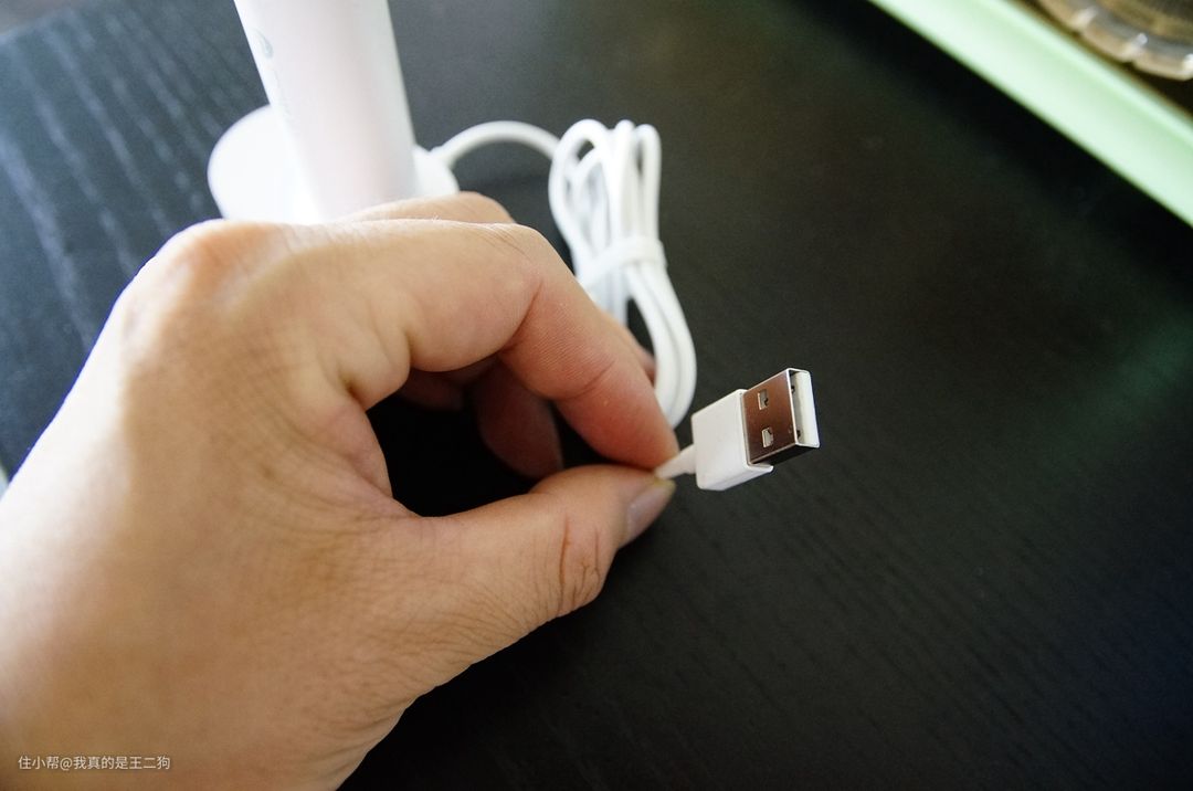 充电线设计也比较小巧,通体白色的设计,和牙刷本体一致。