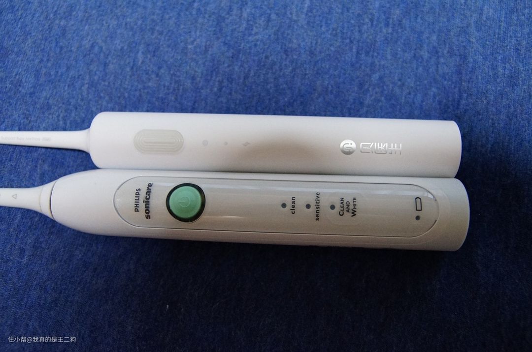 左上方的飞利浦和右下方的贝医生,一大一小,各有所长。飞利浦更大的体积设计配合硅胶的使用,握持感高出不少。贝医生采用全身塑料设计,看起来更加一体简约。同时小巧的体积,对旅行顾客和女性顾客相对来说会更加友好。