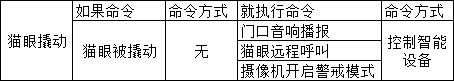 不论家中是否有人,如果猫眼检测到被撬动,那么就进行语音播报“您好请不要随意动猫眼”,并拨打主人电话,同时玄关处的摄像机开启警戒模式。