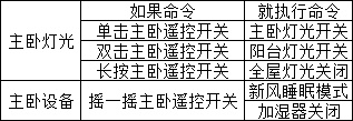 主卧遥控开关和主卧、阳台的开关联动实现双控,其次把主卧加湿器和新风联动也联动到遥控开关。