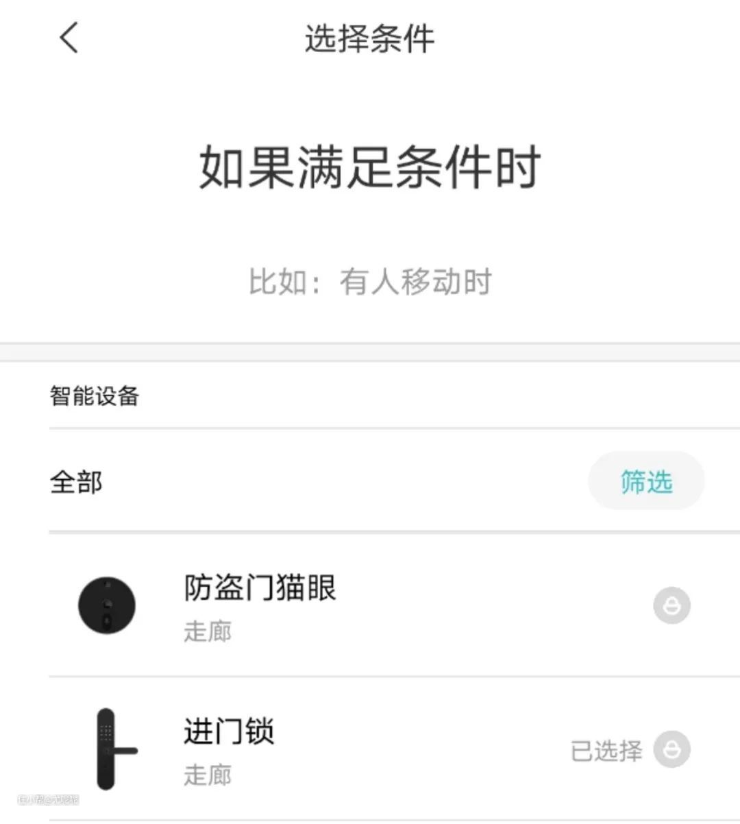 例如你想实现在家中无人时,有人按门铃自动连接视频到手机这个智能,你就会发现指纹锁的如果命令和智能猫眼的如果命令无法同时设定。