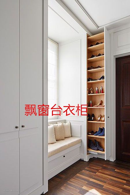 飘窗边上也可以打上衣柜,配合上一个榻榻米,两边装上衣柜,既可以用来储存衣物,还能美化空间。极大的提升了窗户旁边空间的利用率!