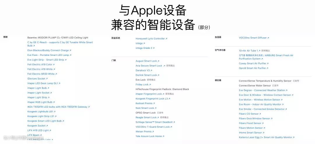 ☉ Apple-HomeKit配件中国地区仅支持少量品牌