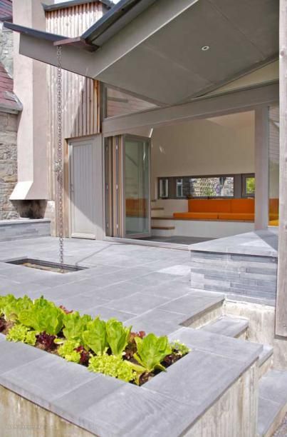 在国外很少会见到雨水管设计,一般房子比较常见的是雨链,其实作用差不多,主要就是为了引流雨水,避免雨水侵蚀外墙,但是它要比普通的雨水管好看很多,有各种各样的造型,但其实雨链下方的空间才是关键。