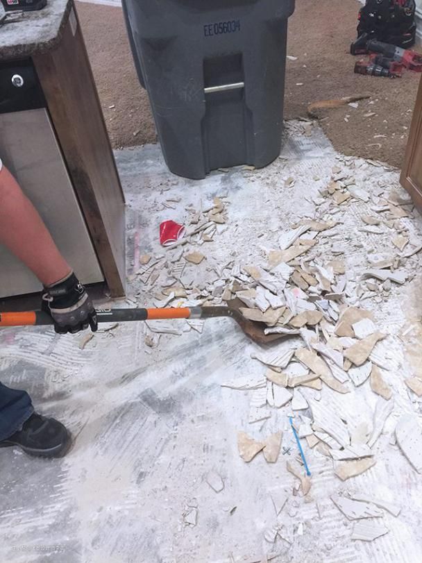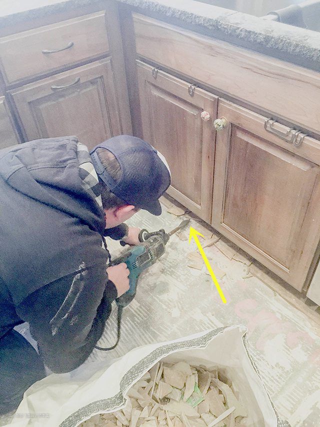 将靠近橱柜边缘的地砖移走,然后利用锤钻来拆除边角地砖,相比角磨机来说,能够更好的保证拆除边角,不造成额外的破坏。