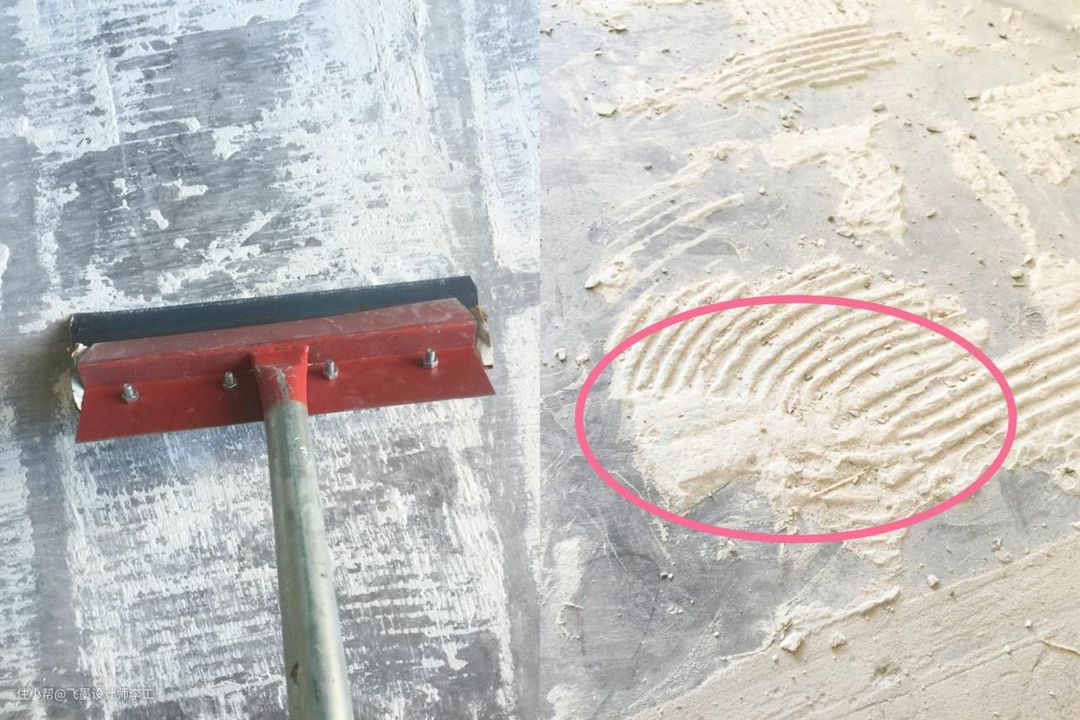戴好口罩,利用锤钻和刮板,将水泥浆"连根拔起",全都清除掉。