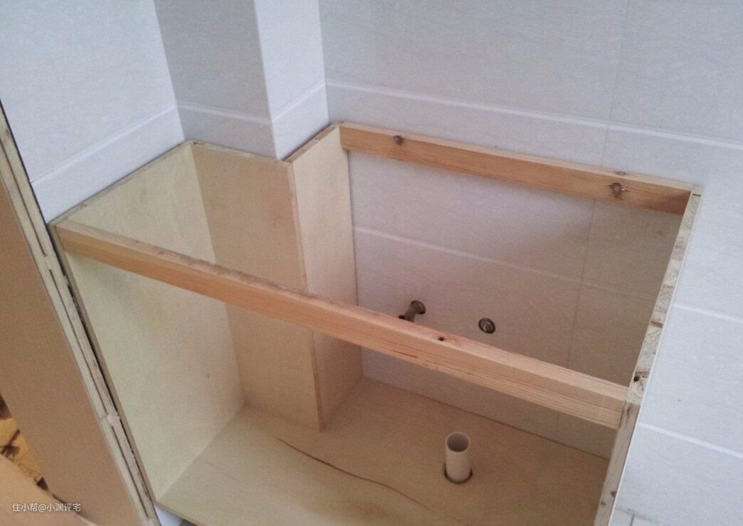 升级一点的办法,是在装修时直接砌一个10cm左右的槽出来。做橱柜的时候,直接把柜体搭在槽上就行了。为了好看,我们还可以在槽的四周贴上踢脚线装饰一下。