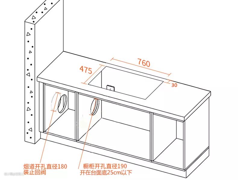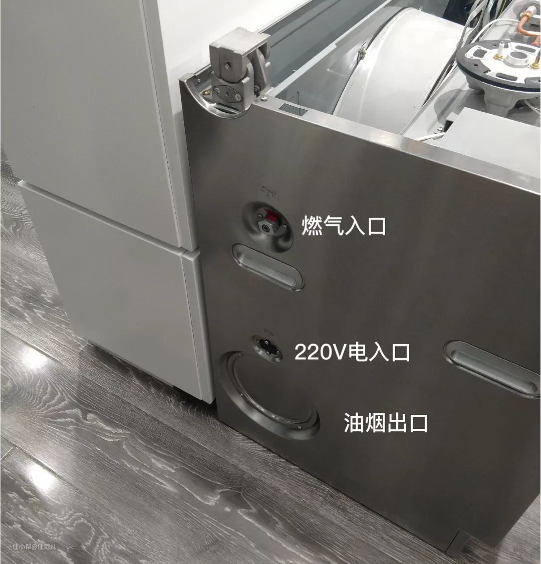 不过这两者都不能避免地就是要在旁边的地柜上打个直径18cm的孔,让排烟管穿过去。