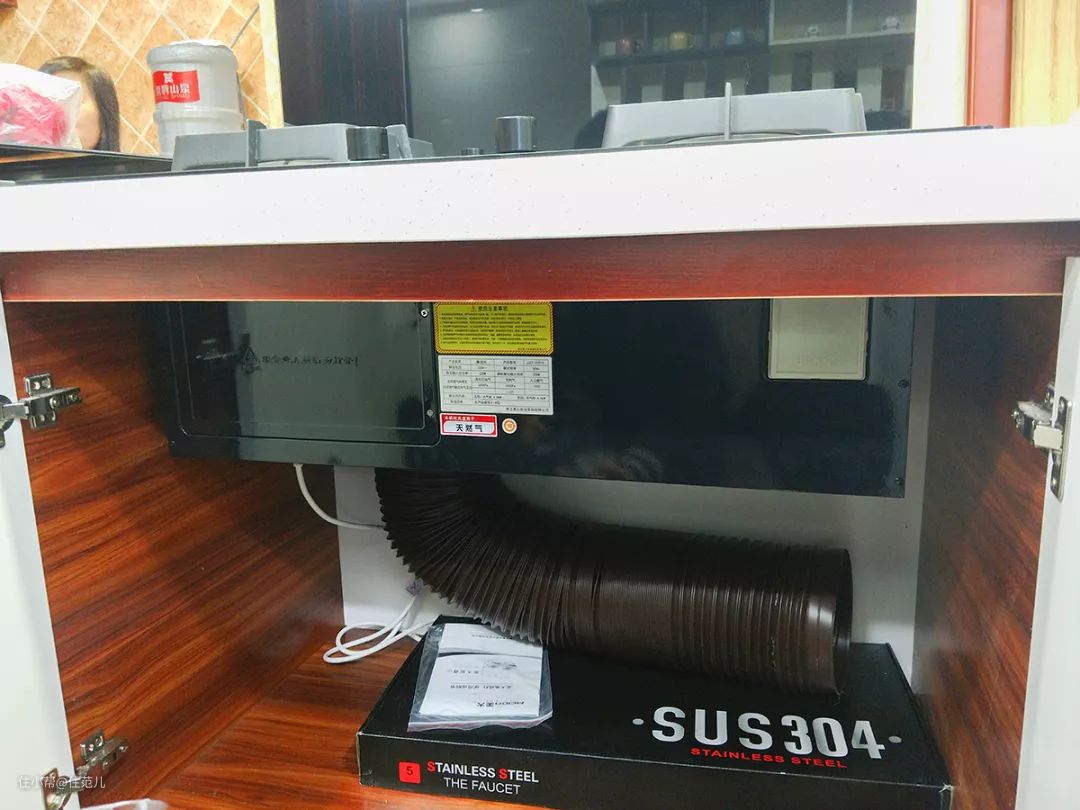 只是吸出来的油烟,一个走顶,藏在天花板下面,一个走地,藏在橱柜地柜里。