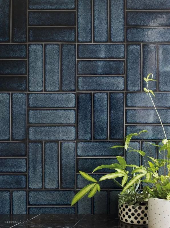 △非常少见的深蓝色瓷砖,搭配灰色美缝,效果很不错