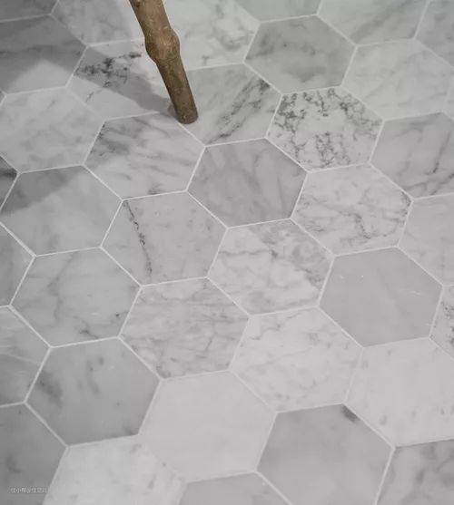 △六角小砖搭配白色砖缝,留缝尽量细,效果非常精致,工费也会翻倍。