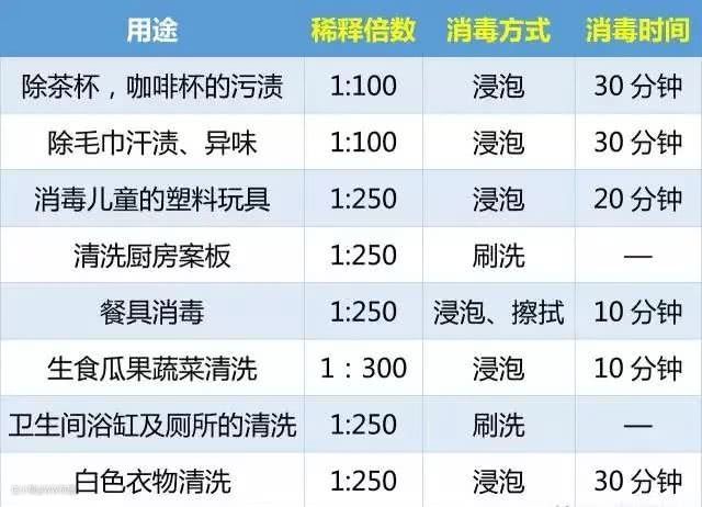首先清洗时带好手套和口罩,避免直接接触。此外在清洗一般物体表面时,与水(冷水)的配比为1:100,消毒时间约为20分钟,而且擦拭、喷洒、拖洗消毒后要用清水洗净。