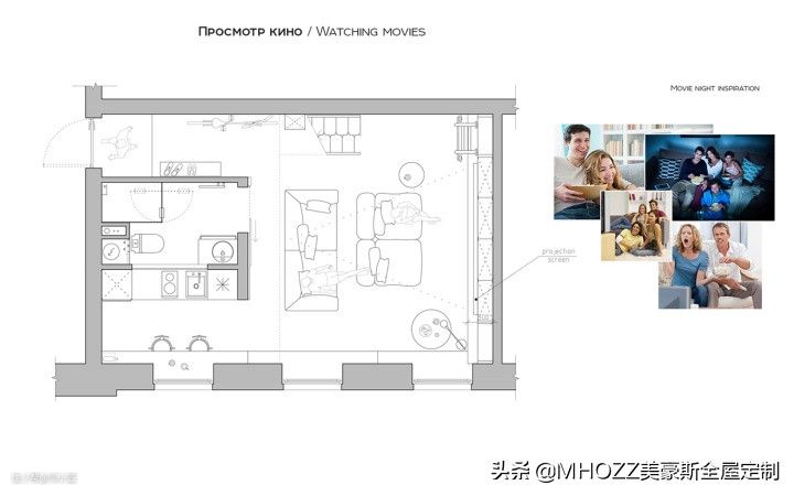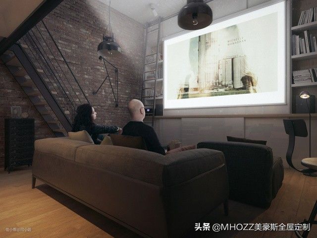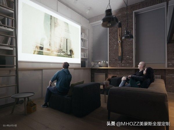 一般我们安装投影仪的时候,都会有这样的烦恼:不看电影的时候,那面墙就会显得太空旷突兀不好看,所以这个屋主很厉害,将幕布放在书架门板的地方,不看电影的时候也很有颜值不突兀。▼
