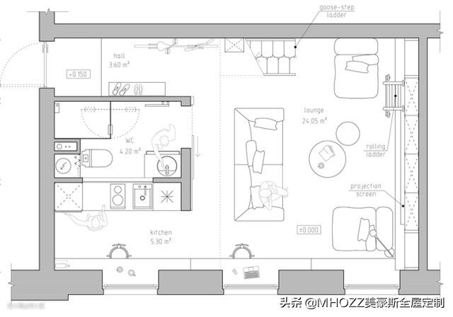 看着有点眼晕,但是不明觉厉,感觉可以立刻入住了。我们全方位立体化地看一下这个36㎡的小loft。▼