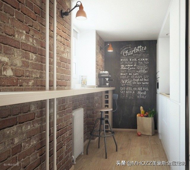 工业风再加点北欧风。墙面大部分是文化砖,柜子都是浅色系,有明有暗,不会压抑或者空洞。各种小家居用品选得也巧妙,吊灯、小茶几、靠包都有为家增色的作用。▼