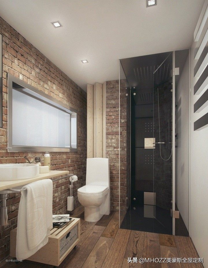 卫生间在厨房旁边,看看卫生间,也是别有洞天,面积不大,但是看起来很整洁不拥挤。三个区域分配合理,淋浴区用黑色作为区分。▼
