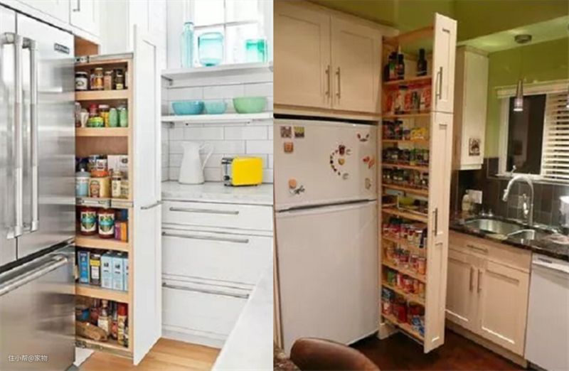 厨房里打造一款竖直抽屉柜是非常有必要的,厨房里的调料品非常多,这个时候如果橱柜上带有竖着的抽屉,再多的调料也能被收纳进去,厨房再小也不怕。