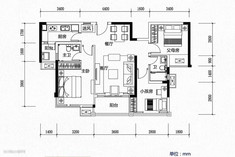 大房子买不起,小户型又多是中间户——偶尔遇到了边户的小户型,又常常是手慢无。中间户之所以这么不受欢迎,主要原因是它的通风太差了。中间户的北侧就是走廊,意味着它的北面没有窗户,无法南北通透,无法让风在自己家形成对流。