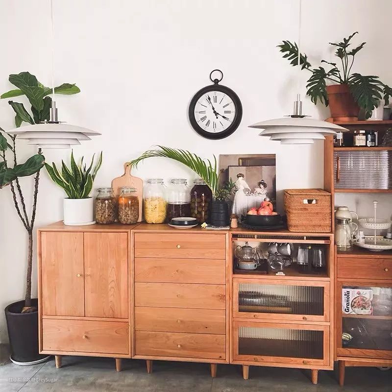 所以,在选择餐边柜的时候,并不是仅仅考虑尺寸,还可以根据自己的餐厅收纳需求以及爱好来进行选择哟~