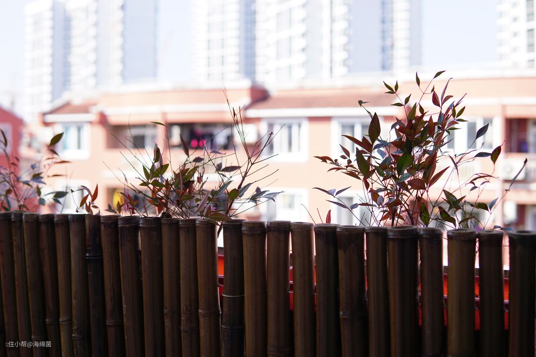 我在竹篱笆的外侧也种了点植物,这是有次去民宿学来的布置方法,等出暖花开,篱笆后面有叶片衬托会更有层次感。