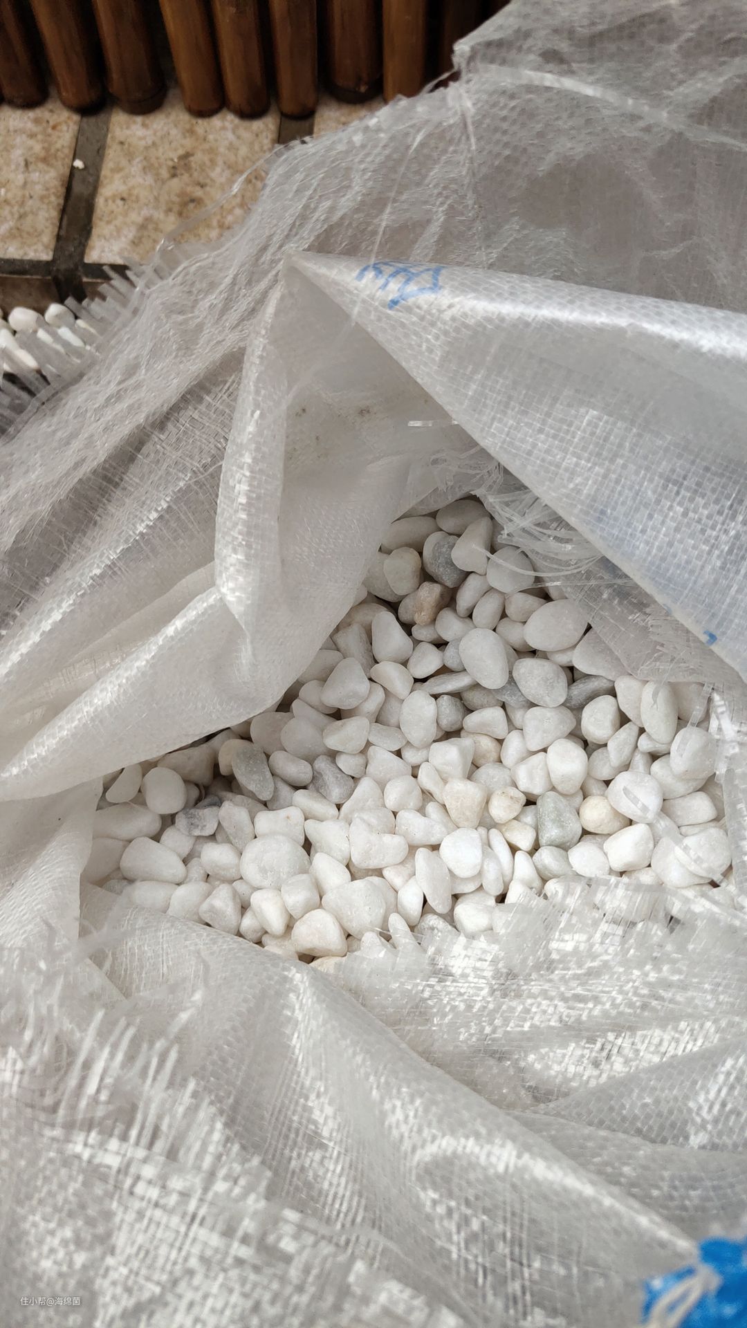我选择了1-2cm直径的白石子,铺后目测效果还不错。一般卖家秀里面都会有和硬币之类的对照图,买之前仔细脑补一下,确定一下尺寸很关键。
