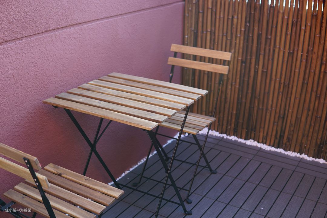 在IKEA买了一套折叠桌椅,防腐木加上铁艺: