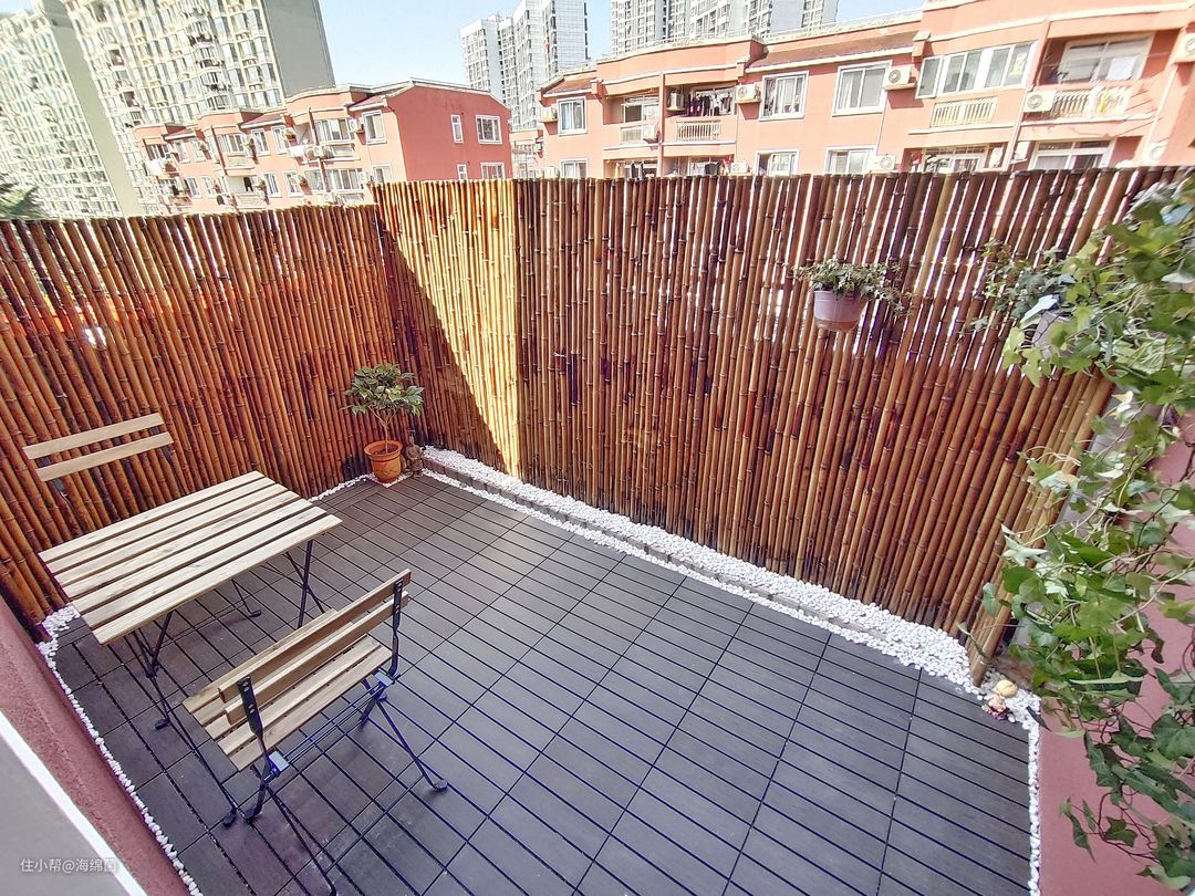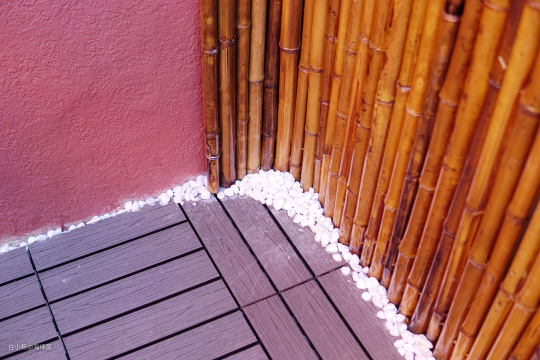 地面搞定了,墙面的砖块自然也要遮掉,我逛淘宝的时候发现竹篱笆和防腐木还挺般配的,于是就决定尝试下: