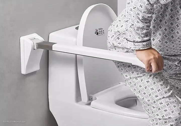 家里有老年人的话,马桶最好不要用蹲式!为了提高安全保证,还可以在马桶侧方设置扶手,扶手高度建议设置在100-120cm。