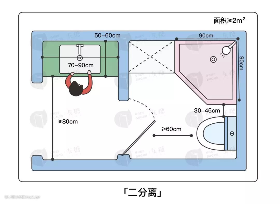 洗漱区、马桶区、淋浴区,尺寸怎么规划,布局怎么设定?