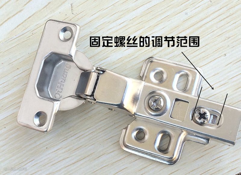 柜门在刚刚安装完成后需要调节铰链,在多次开关后,铰链上的固定螺丝也会松动,导致柜门开关不顺畅,此时也需要调节铰链——很多用户反映自己家的柜门越用越松,多数时候就是因为固定螺丝松动了。铰链的调节原理如下:
