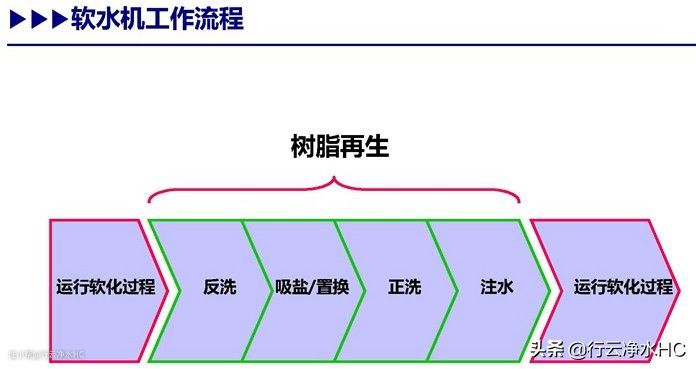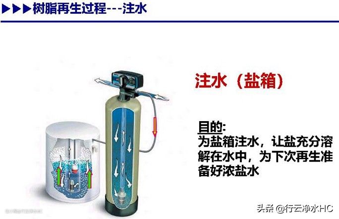目的是清除树脂层中残留的再生废液及置换下来的钙镁离子。