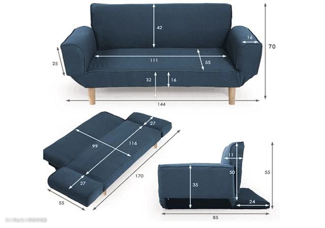 折叠沙发床座面的高度在35-42cm间,座位深度在48-55cm间,靠背的倾斜度最好在100-108度间,扶手的高度在62-65cm。