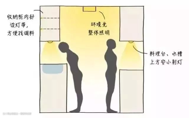 不知道大家做晚饭多不多,厨房君切菜眼睛都快瞅瞎了,其实在设计厨房时,在吊柜下方装一条灯带或辅助光源,就能保证厨房台面的照明,再也不怕晚上在黑黢黢的厨房切菜了...
