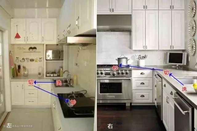 其实出现这种情况最大的原因,就是因为在装修的时候,由于厨房的布局出现错误才导致这种情况的发生。今天我们来说一说厨房在装修的时候采用流线型的设计,通过简化房间动线,来提高厨房家务的效率。