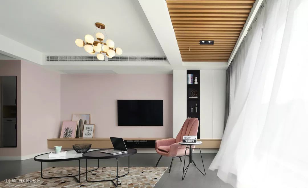 对于喜欢窝在沙发上看电视,将客厅主要当成影音区使用的屋主来说,客厅的光线不宜太强,以免影响到视听效果。