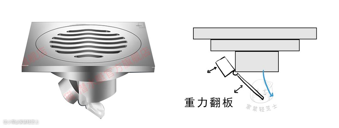 T型地漏就是用弹簧或者磁铁控制挡水板,当下水时挡水板弹开。