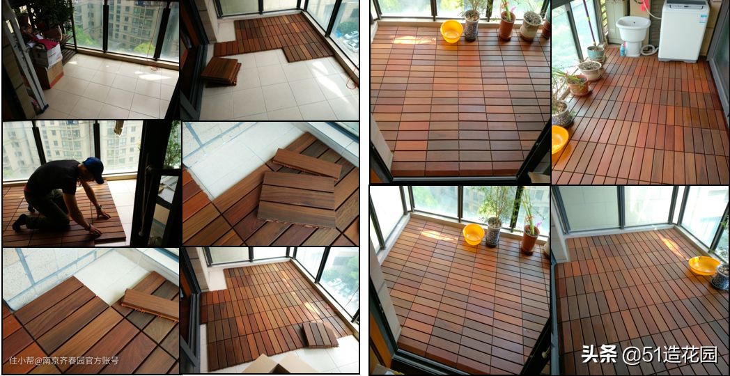 当然了现在市场上有相对成熟的硬木快拼地板可以选择,可以自己动手快速拼接的硬木地板近年来深受花园业主的喜爱,特别是露台阳台花园的使用者以及喜欢自己DIY的业主的喜爱。