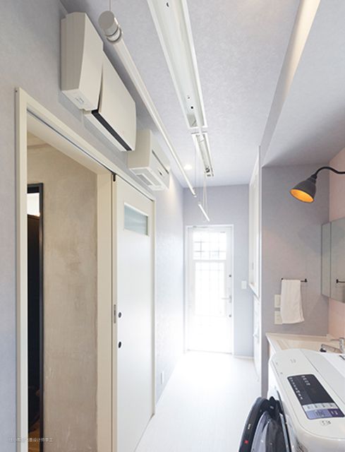 一般升降晾衣杆即使调节地再高也还是露在外面,所以美观度比较差,但邻居家的晾衣服却不同,它可以藏进天花板内,平时还真的很难注意到。