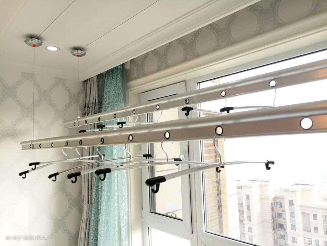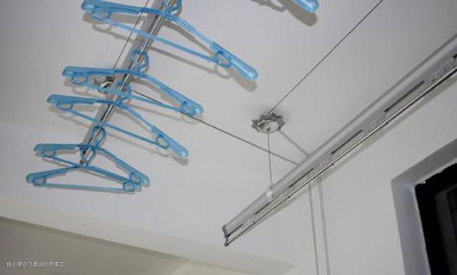 虽然这种晾衣杆安装比较简单,但必须要提前规划,安装天花板时要让师傅预留好孔洞,否则后期再来打孔又是个麻烦事,因为晾衣杆比较轻,所以也不用担心承重问题。