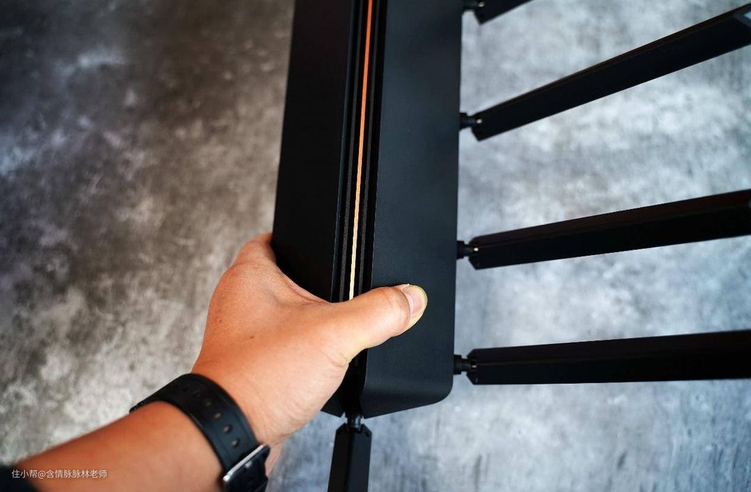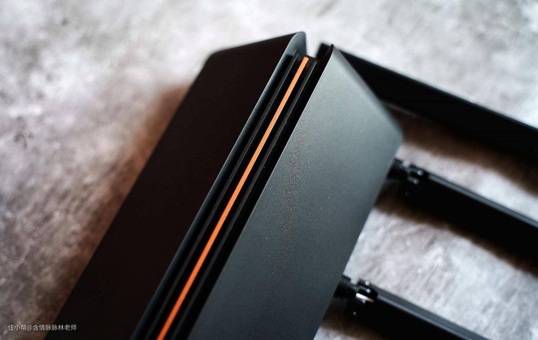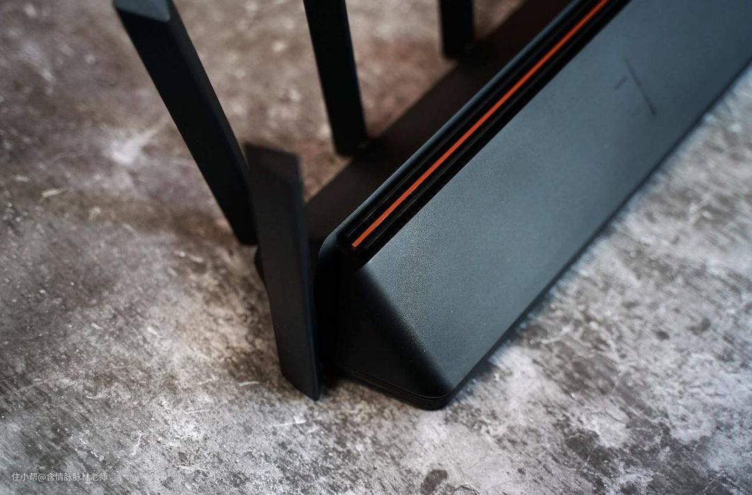 ▲AX3600全黑色的设计,除了那点金色的线条作为点缀。色的点缀的确让产品丰富了不少,天线的长度不高,但是底部由于太过于宽大真的很占地方。