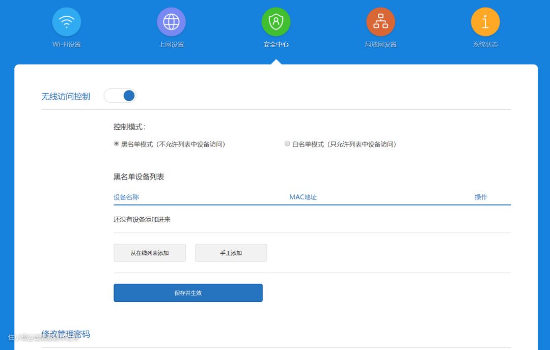 ▲常用设置里面包括设置贷款,设置访问白名单,黑名单,设置登陆IP地址,设置登陆密码。谁知DHCP服务,静态路由等等功能,还是非常齐全的。