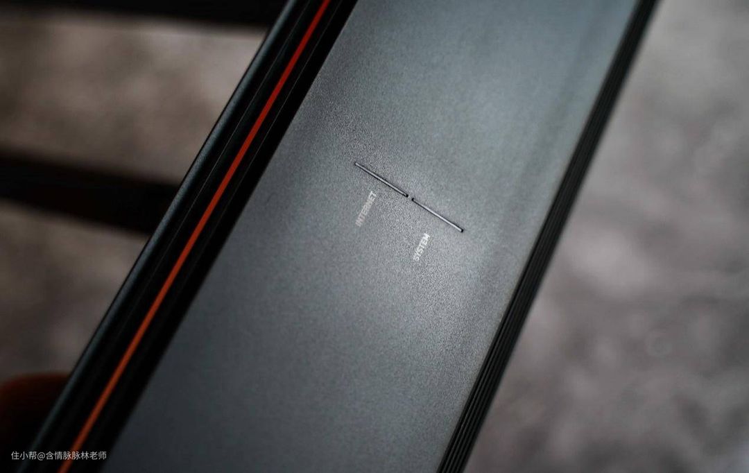 ▲路由器的正面只有两个显示灯,一个显示网络状态,有故障或者正在联网的时候显色黄色,而联网成功则显示成淡蓝色。和顶部的AioT天线呼应,而还有一个灯则显示为SYSTEM状态,正常工作为淡蓝色,故障则显示黄色。