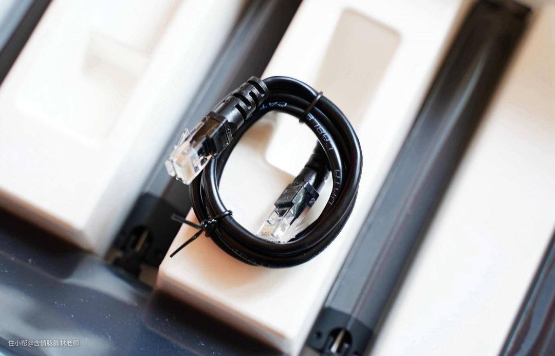 ▲AX3600配置的电源输出为12V 2A,同时附送一根比较短的网线。我特地量了一下长度只有80CM,不过满足光猫和路由器的连接足够。