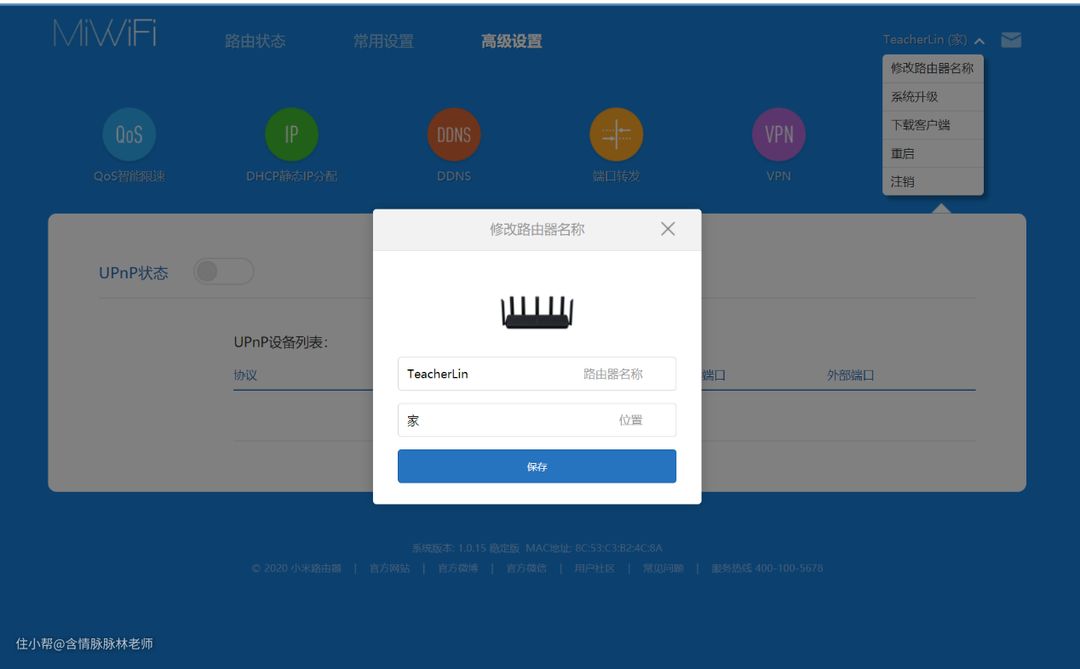 ▲第一次登陆之后建议升级软件,由于这款路由刚刚发布不久,前期可能软件方面会有一些BUG,所以建议在使用之前优先升级固件。升级完固件之后可以优先修改你需要的路由器名称和位置。