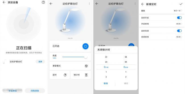 通过华为智慧生活APP内可设置相关的定时开关,倒计时关闭,还可以控制灯的亮度,定时关闭或开启,关闭倒计时和课堂模式等,通过远程控制更方便,同时让自己养成良好的用眼习惯。