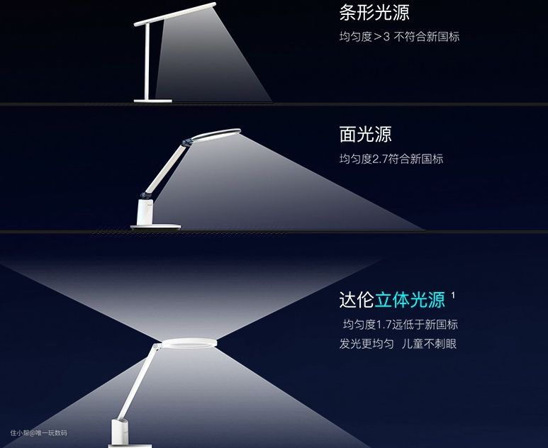 实际使用前,我们需要了解下达伦发光板技术。达伦DL-31W台灯设计采用立体光源,20%光线向上,80%光线向下,合理分配光源,让光扩散到整个区域,上下都有光;