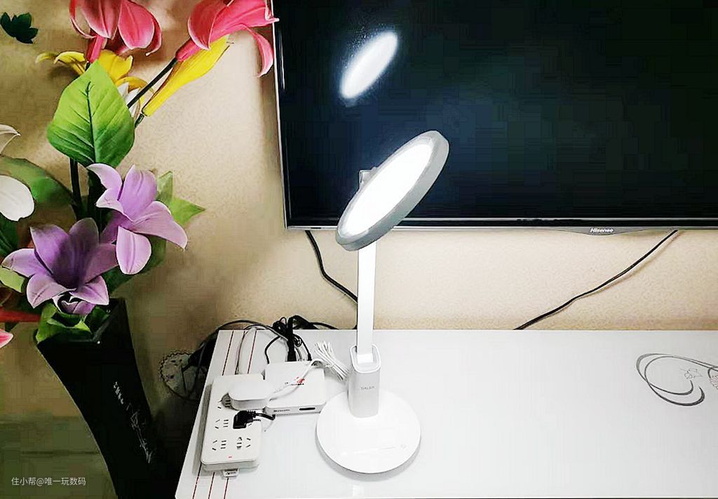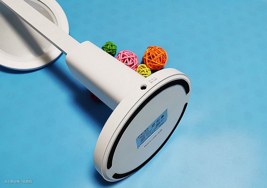 达伦DL-31W台灯和传统台灯相比较来说,首先在第一观感上,设计很新潮;整体采用白色外观,圆形的底座搭配支架以及灯体没有多余的设计,简洁又显得高端。